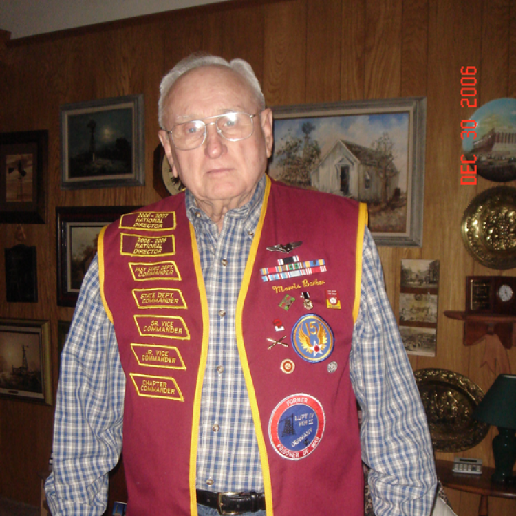 Morris Barker served as a B-24 nose and tail gunner during WWII and served in the U.S. Army Air Corps from March 1943 through October 1945. He was later shot down and held as a German P.O.W. until the end of the war. He left the service with the rank of Sgt.