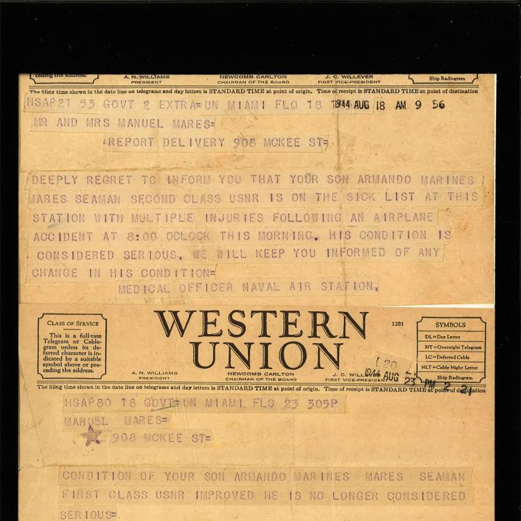 Armando Mares served as a divebomber tailgunner during WWII and almost died when he plane crashed during a training mission.