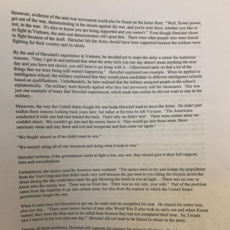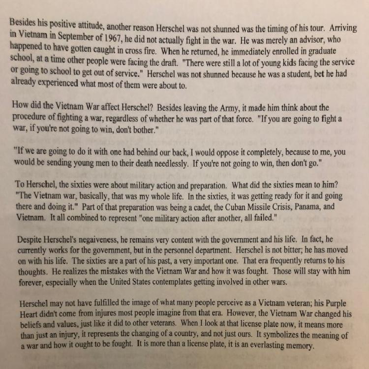 Herschel Sheiness served in the U.S. Army from 1965 to 1968.
