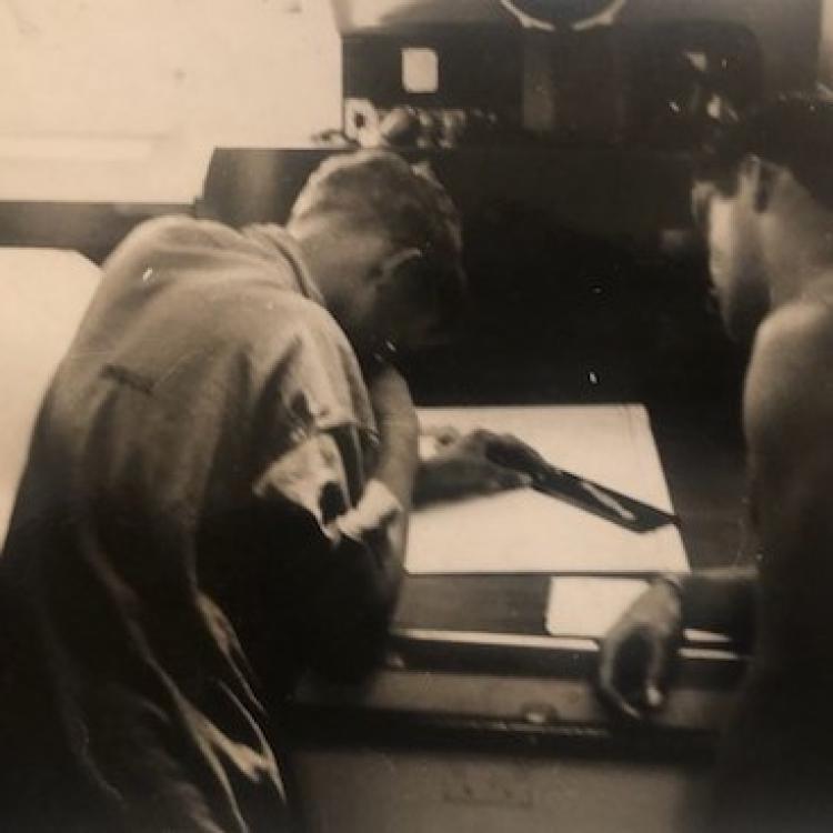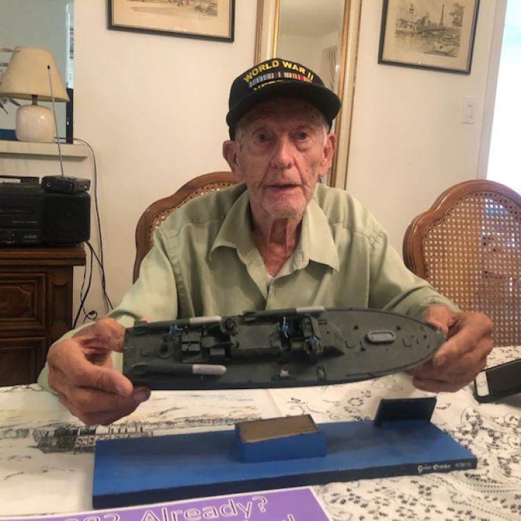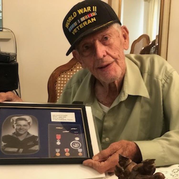 Clyde O. Combs was drafted in 1943 and went into the U.S. Navy. He attended quartermaster school and motor torpedo boat training, where he was assigned to Motor Torpedo Boat Squadron Ron 35. Mr. Combs was part of D-Day on June 6th, 1944, The Invasion of Normandy, where his boat, the PT-515, protected the west flank. He got out of the Navy in 1945. On the 65th anniversary of D-Day, Mr. Combs received the French Legion of Honor Medal. After the service, Mr.Combs became an engineer and now resides in Houston, Texas.