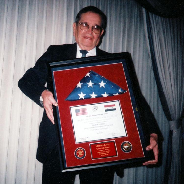 Mr. Manny Rivas of El Paso, TX was a corporal in the US Marines and served as an infantryman with Alpha Company, 1st Battalion, 1st Marine Regiment during WWII.