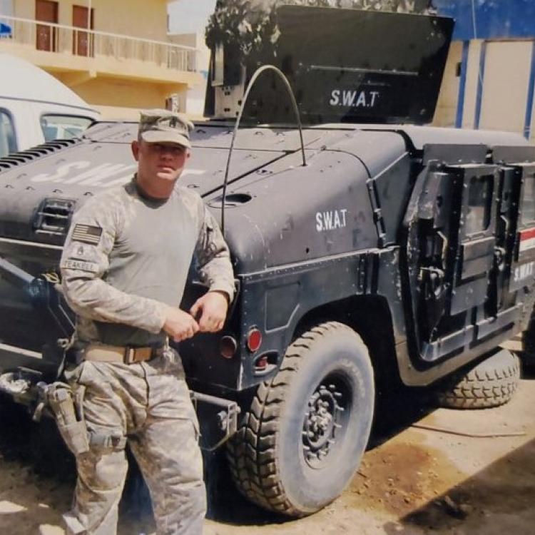 Larry "Scott" Teakell, a native Texan, joined the U.S. Army in 1995. He served as a medic and had three tours in Iraq, one in Bosnia and Macedonia. In July 2007 in Iraq, SSgt Teakell put out a fuel fire that covered