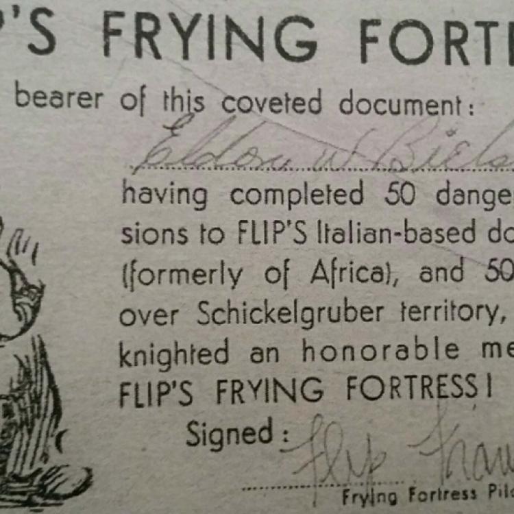 Eldon Bielss joined the Army 5th Cavalry, 1st Cavalry Division in 1940 where he patrolled the Mexican border as a machine gunner. In the spring of 1941 he transferred to the U.S. Army Air Force. He received his commission in 1943 and was sent to B-17 transitional school where he learned to fly the big four bombers. During World War II Mr. Bielss was assigned to the 97th Bomb Group where he flew 51 combat missions. Mr. Bielss now resides at the Clyde W. Cosper Texas State Veterans Home.