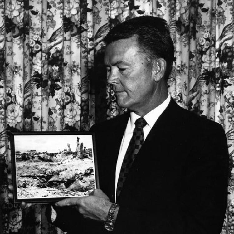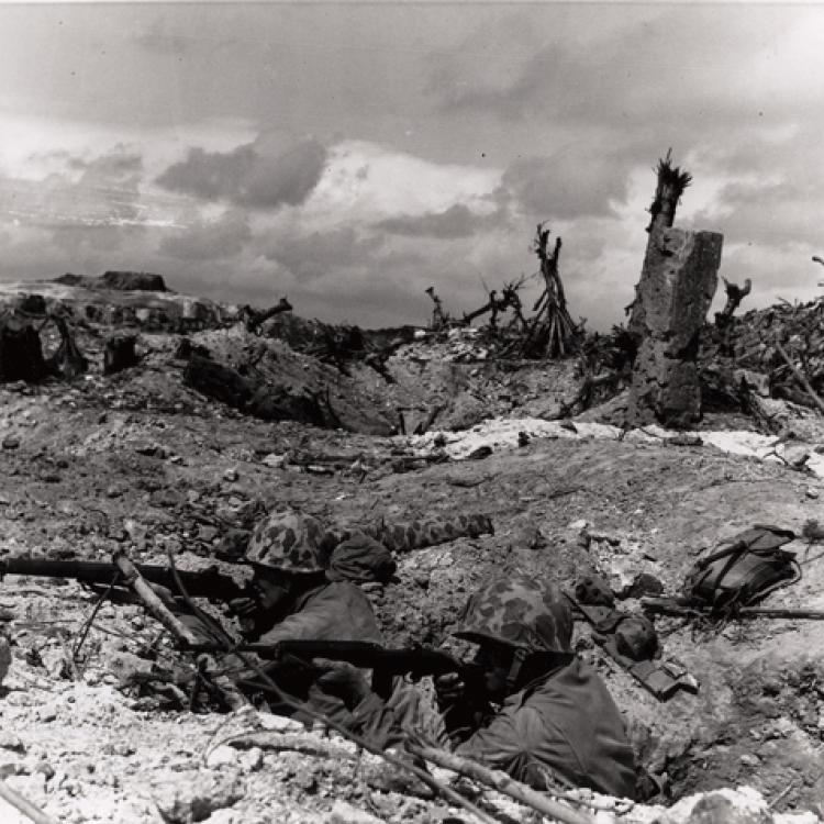 He took part in the famous Battle of Iwo Jima with Fox Company, 2nd Battalion, 9th Marines. During the fight he and members of his unit were cut off by the Japanese and spent over 36 hours behind enemy lines without reinforcements or supplies.